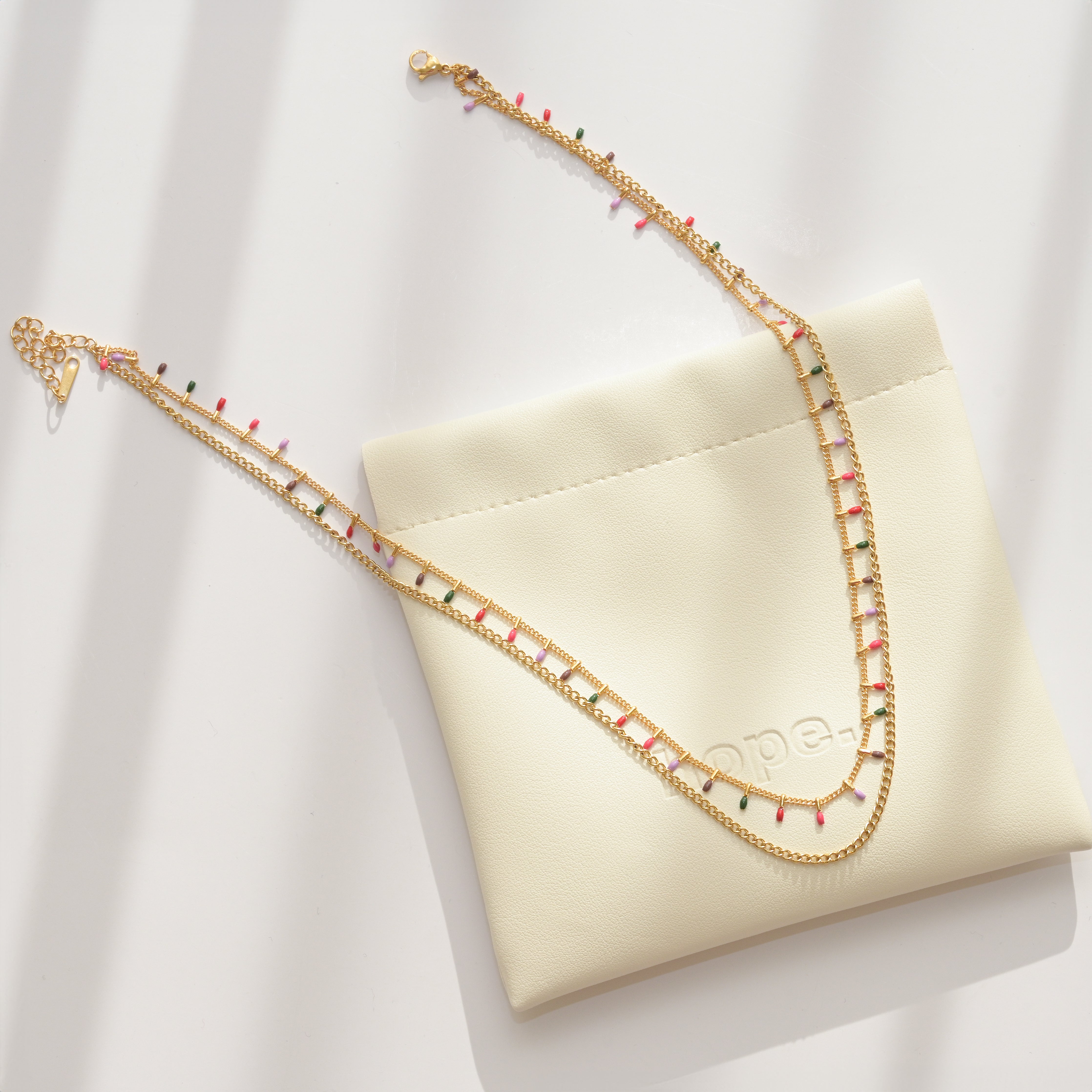 Hope’s luxury packaging is designed to enhance the unboxing experience and reflect the elegance of our brand. Each piece of jewelry comes in our brand leather case, ensuring a premium look and feel.
