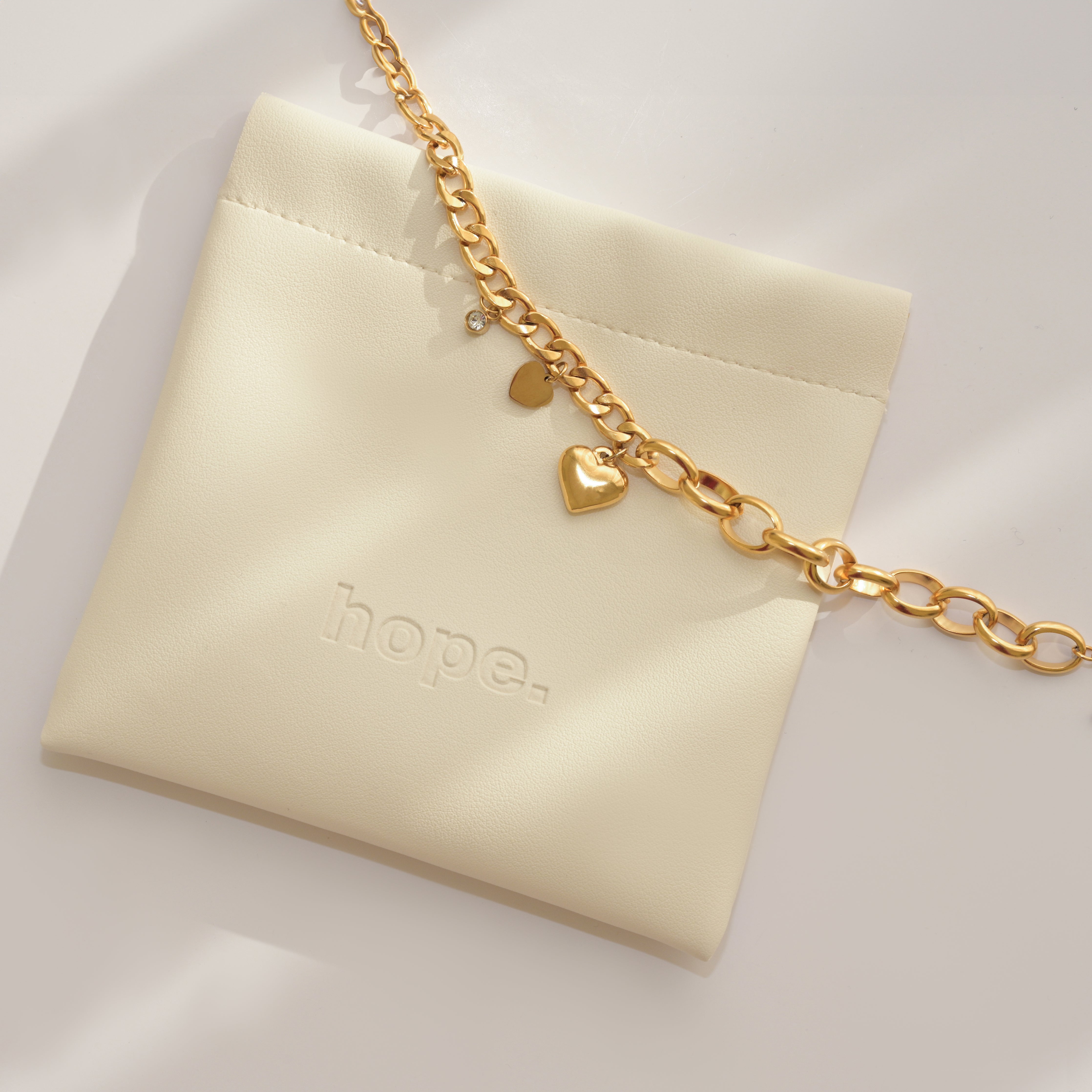 Hope’s luxury packaging is designed to enhance the unboxing experience and reflect the elegance of our brand. Each piece of jewelry comes in our brand leather case, ensuring a premium look and feel.